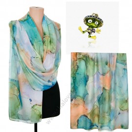 S 0311/1127 Луксозен комплект „Танц в тюркоаз“ – памучен шал и брошка