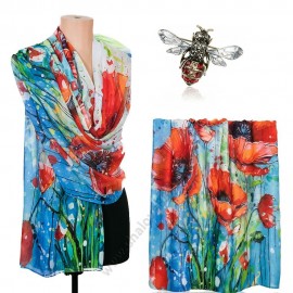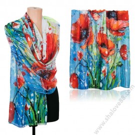 S 0308 Луксозен памучен шал „Маков сън“ с артистичен десен