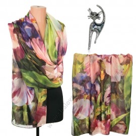 S 0307/1130 Луксозен комплект „Градинска мистерия“ – памучен шал и брошка