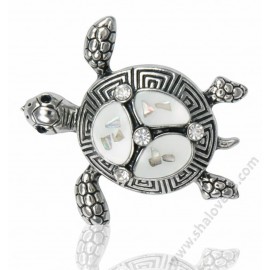 S 1142 Сребриста брошка „Мистична костенурка“ със седефен ефект в подаръчна кутия