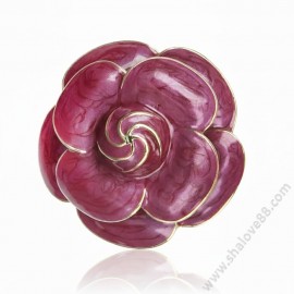 S 1143 Златиста брошка „Кралска роза“ с цикламен емайл в подаръчна кутия