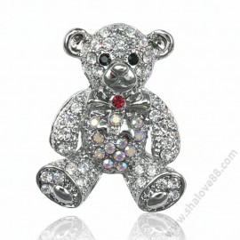 S 1139 Сребриста брошка „Сладко мече“ с кристали и емайл в подаръчна кутия