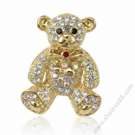 S 1139 Златиста брошка „Сладко мече“ с кристали и емайл в подаръчна кутия
