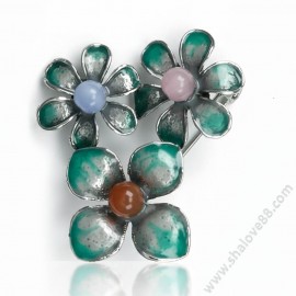 S 1144 Артистична брошка „Трите цветя“ с емайл и полускъпоценни камъни
